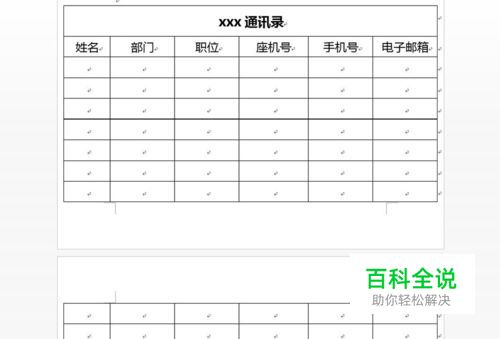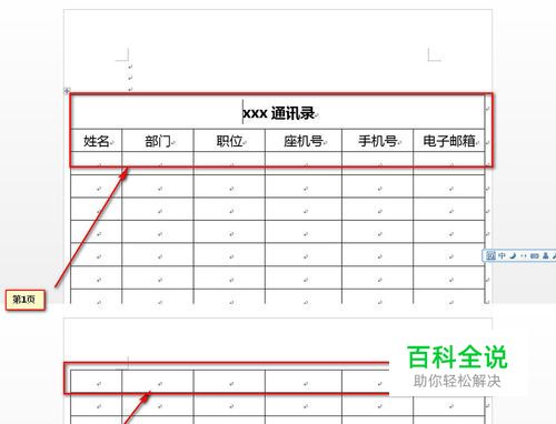 打开需要处理的表格,在这个文档中有一个跨页的通讯录,第二页的表格没有出现第一页的表头,如图所示。