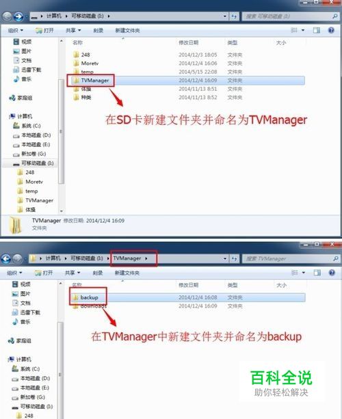 在SD卡里面新建一个文件夹,命名为TVManager,再在这个文件夹里建个子文件夹命名为backup