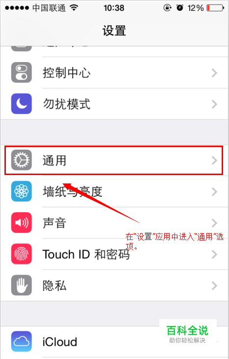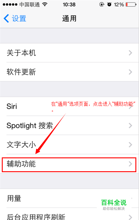第二步,在“通用”选项页面,点击进入“辅助功能”。