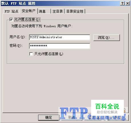 打开目标FTP站点的属性设置窗口,单击该窗口中的“安全帐号”标签,进入到标签设置页面; 检查该标签页面中的“允许匿名连接”项目是否处于选中状态,要是发现该选项已经被选中的话,那我们必须及时取消它的选中状态。