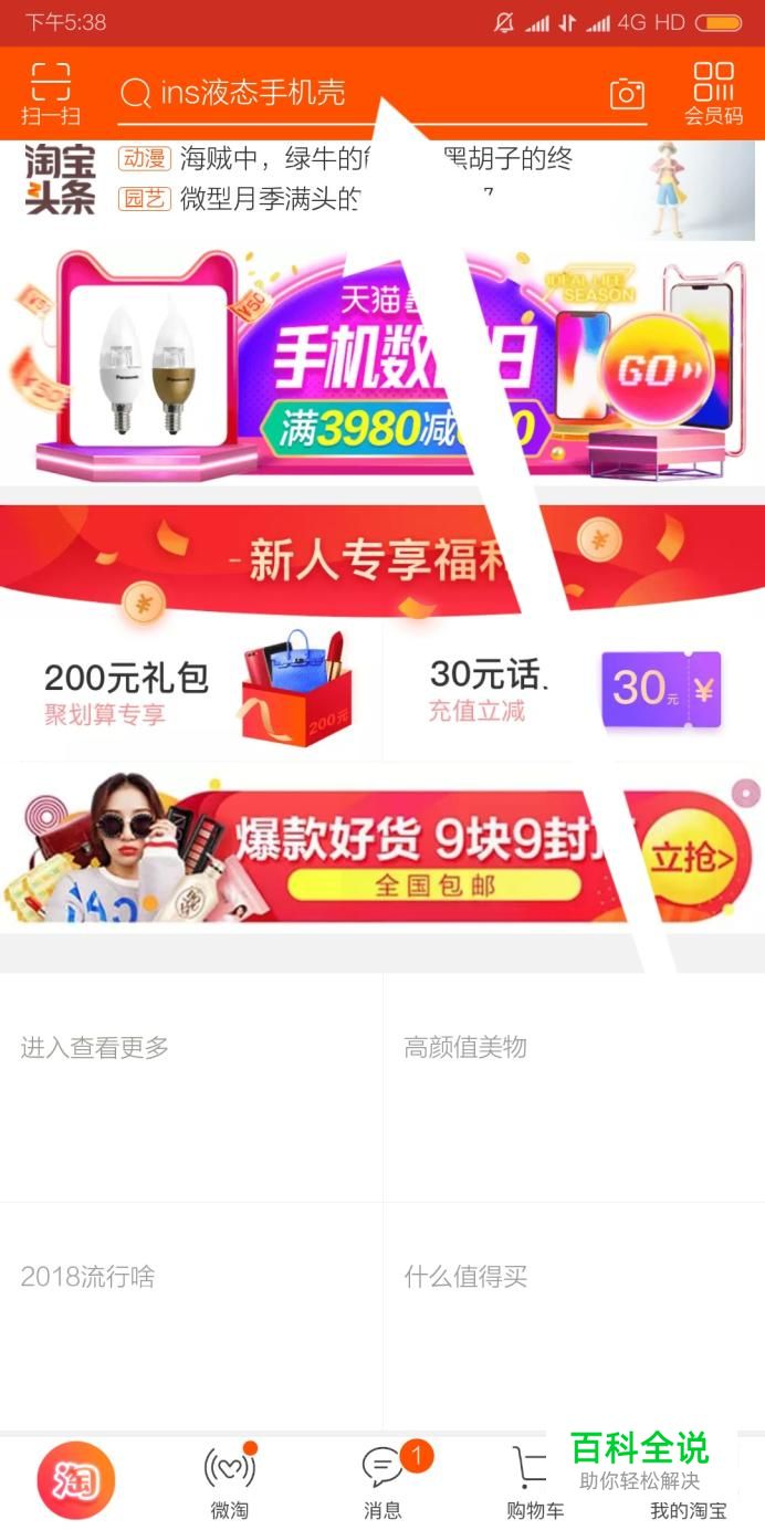首先点击进入手机淘宝,搜索宝贝的关键词。