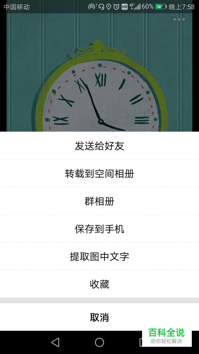 然后点击图片右下角的一个按钮,在弹出的选项中选择保存到手机。