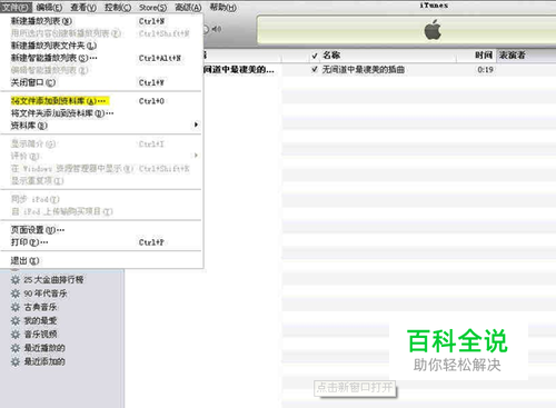 2.转换铃声格式。 (1)打开itunes,将已截取的声音片断添加到Itunes中: