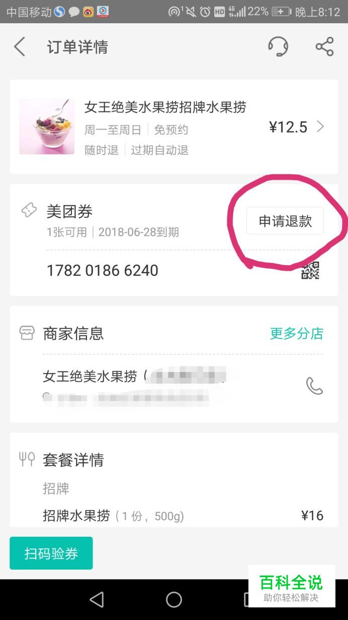 在弹出的界面点击申请退款,如图。