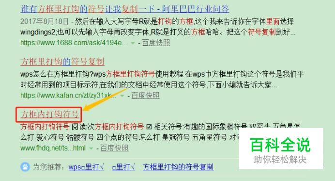 通过搜狗搜索复制粘贴 这个应该是目前很多人在用的方法之一,因为相比较最为简单啊,从下图可以看出我们通过各种搜索引擎输入"方框打勾""打勾符号"等类似字眼,在网页内即可找到相关符号,我们将其复制粘贴到word文档即可;