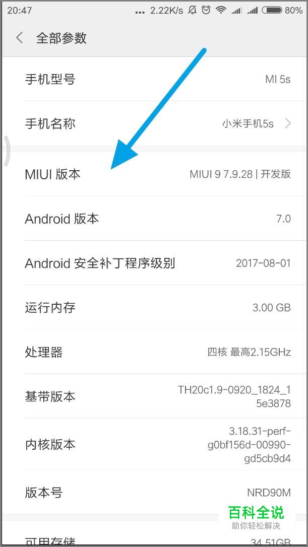 在全部参数中,我们找到 MIUI 版本,对着这个图标连点7次!