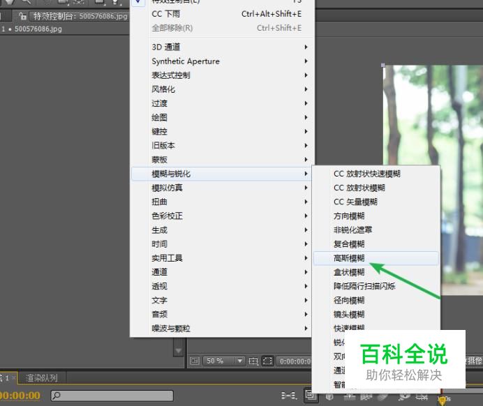 快速在特效菜单下,找到我们的高斯模糊特效。