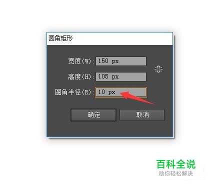 我们先在工具栏中选择圆角矩形工具,然后在画布中点击,在弹出的设置面板中,将圆角半径设置为10px,新建一个圆角矩形,不用描边;