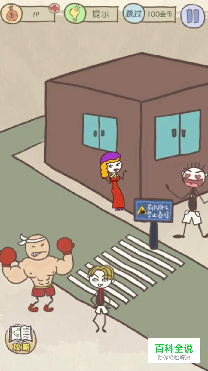 第一关:一见钟情。将房子底下的蓝色牌子,移到斑马线上就可以见到女神了。