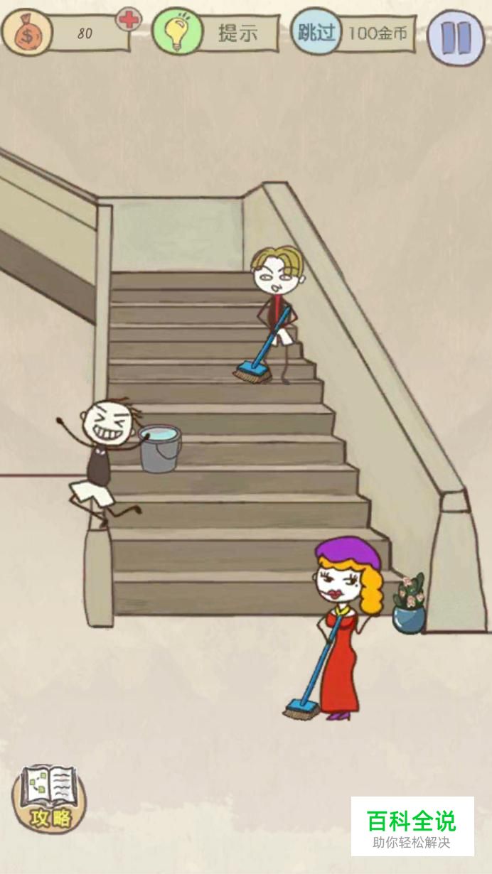第三关:值日生。将史小坑拖动到楼梯栏杆上,他就会自己滑下去,也不会弄脏地。