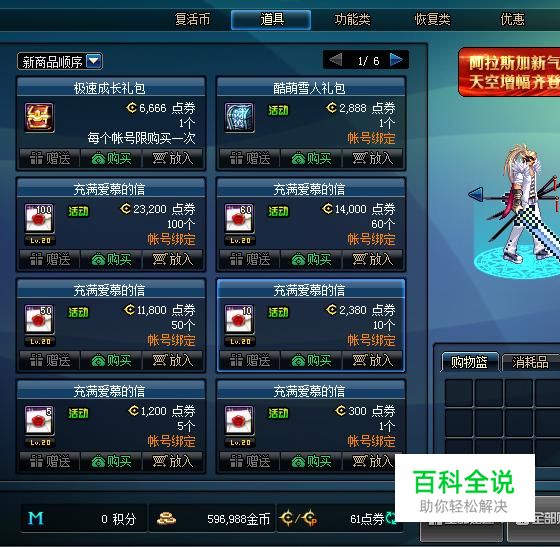进入商城之后,你会发现道具里的幸运魔锤不见了!多了道具“充满爱慕的信”