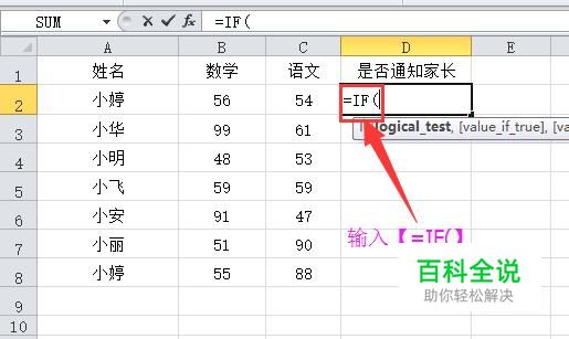 在“是否通知家长”下面的单元格中输入【=IF(】