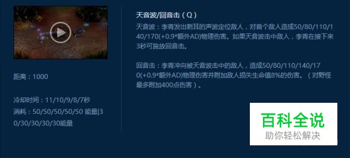 盲僧的Q技能:天音波/回音击,q中敌方之后提供真实视野并激活二段q,二段q回音击是瞎子前期输出的主要来源。