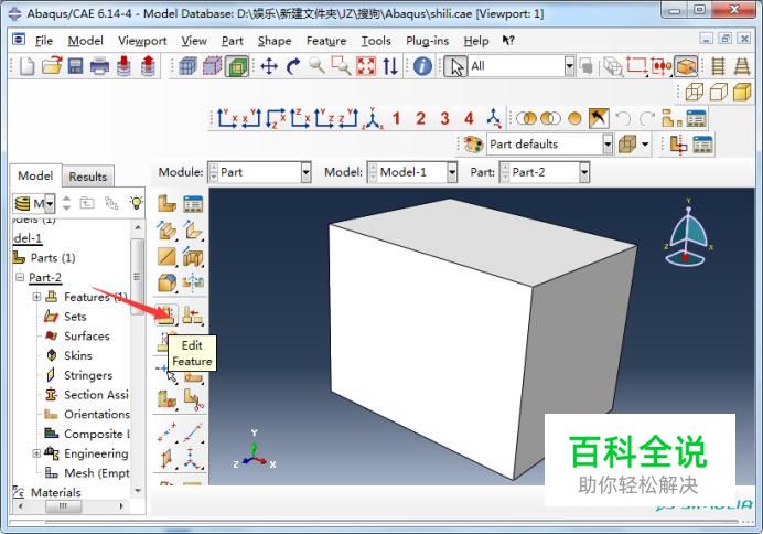 Abaqus这个有限元模拟软件具有非常人性化建模的功能,人们能够建立出非常复杂的part,那么在已知的part上可以使用edit feature功能能够快速的更改part的图形,那么如何使用呢?
