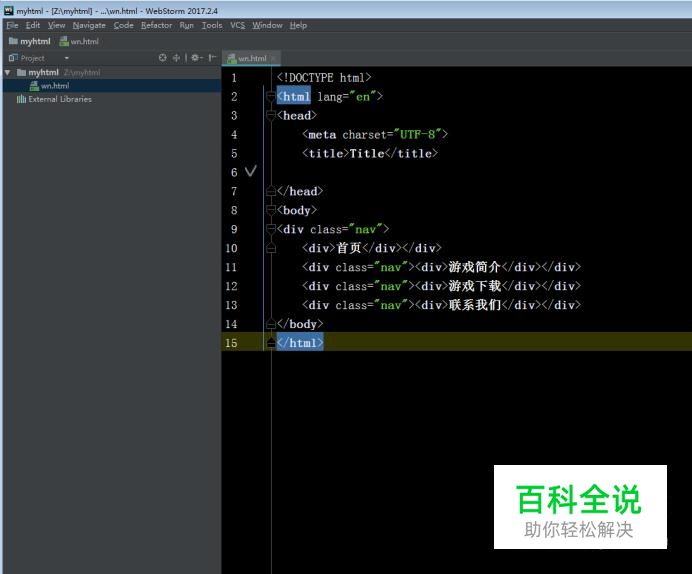 先在<body>里面插入五个<div>标签,类名class为nav,在<div>标签里输入自已想要的内容: