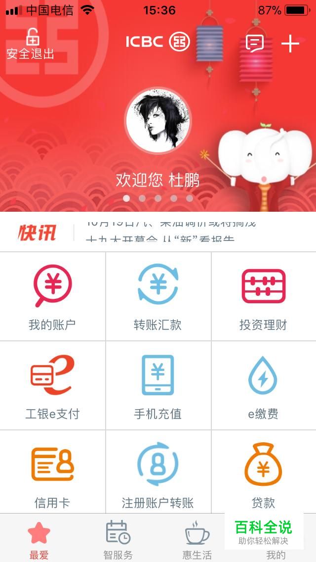 打开“中国工商银行”应用,点击“智服务”。