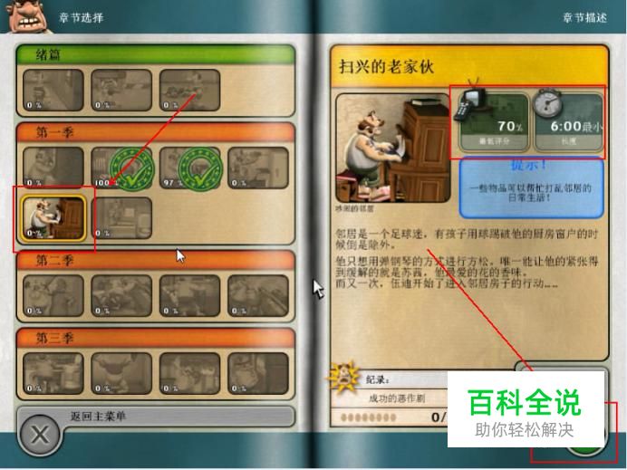 在章节选择界面点选第一季第五集,本集最低通关评分为70%,时限为6分钟。好了点击右下角的开始按钮,开始我们的游戏之旅吧!