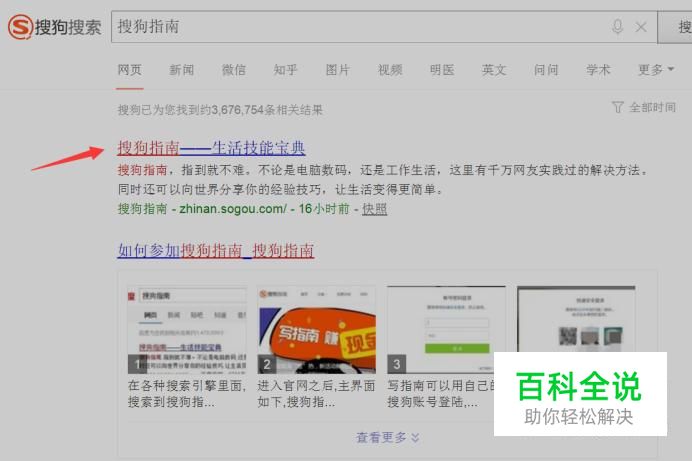 用搜狗浏览器搜索搜狗指南,点击进入第一个网页。