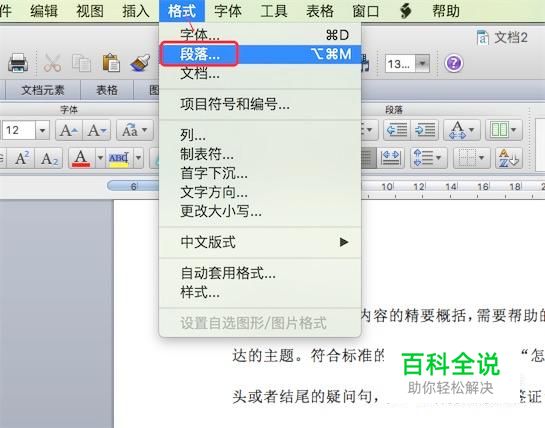 要调整间距,我们点击菜单栏上的‘格式’-->‘段落’