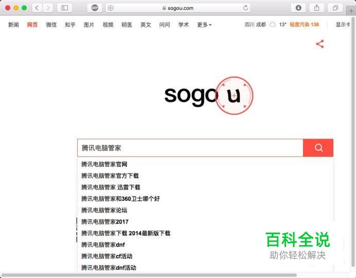 要想移除FLASH插件的话,需要先下载软件,打开搜狗搜索“腾讯电脑管家”