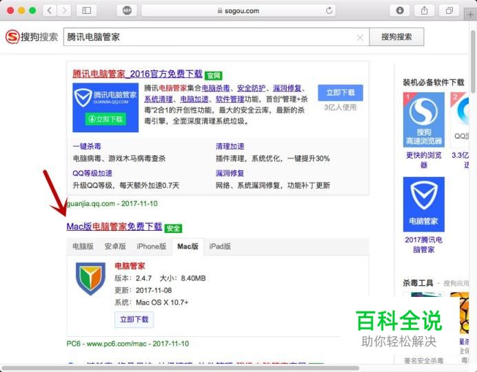 在搜索结果中,找到安全标识的网址,选择“MAC版”立即下载安装。
