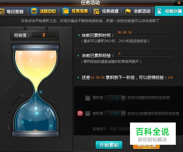经验沙漏:下线之前可以开始积累,上线之后领取即可。