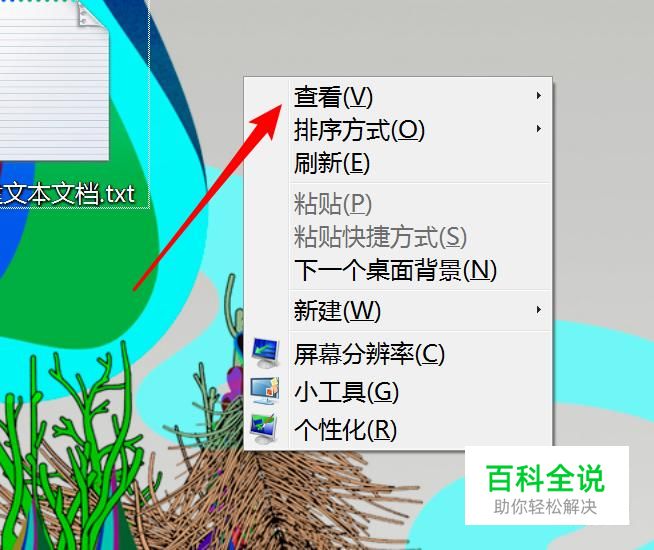 其实解决方法很简单。 右键点击桌面上的空白地方,在右键菜单上点击‘查看’