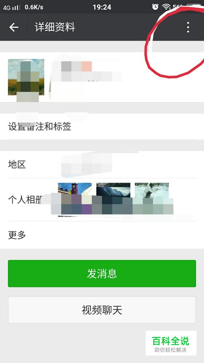 打开这个人的主页后,点击右上角三个点的地方,如下图所示