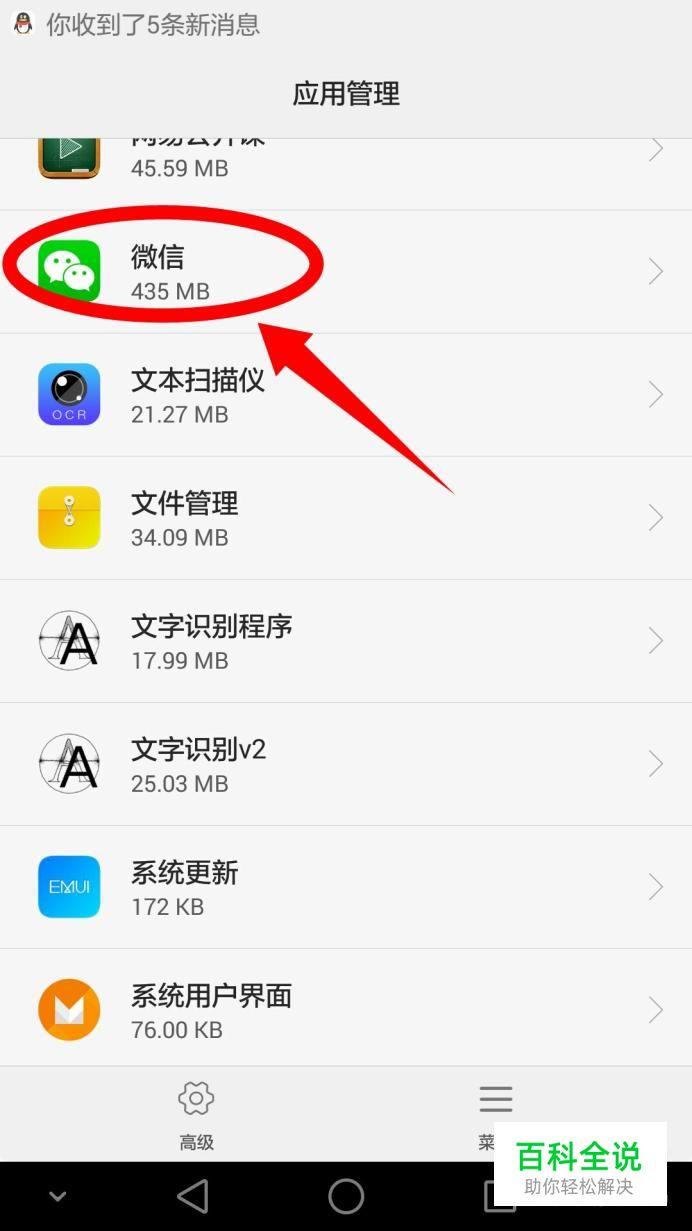 在我们的设置里找到应用管理,找到微信进入到软件里!