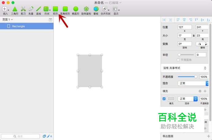 进入sketch界面,在工具栏中选择“矩形”,然后在画板上绘制一个矩形。