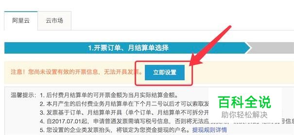 如果你从没有设置过发票的相关信息,点击后,会提示需要先设置开票信息,点击‘立即设置’按钮。