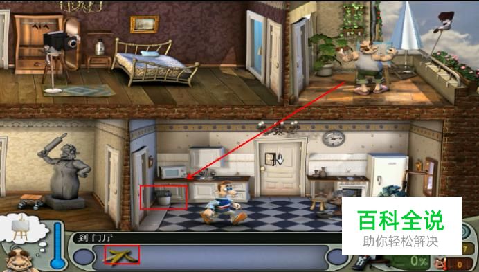 等邻居进入厨房的时候,迅速的通过二楼休息室上到三楼。同时,从床头柜上取一些镁粉。注意:二楼休息室里有一只睡觉的鹦鹉,吵醒她会引来邻居。所以要迅速的上楼或者右击悄悄的上楼。