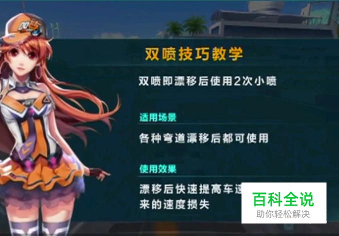双喷可以应用在各种弯道漂移之后,可以提高我们车子的速度,减少漂移带来的速度损失。