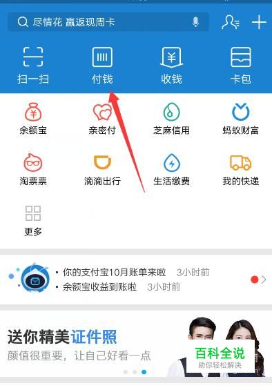 在支付宝首页上,点击“付钱”功能