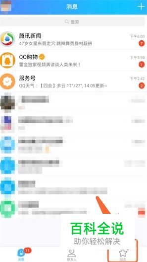 打开手机QQ,点击下方的‘动态’图标