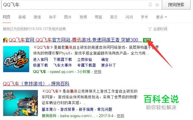 在搜狗搜索中输入QQ飞车,如图所示