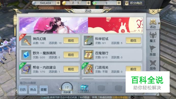 进入活动界面,点击科举初试前往,每日可完成1次,并且会获得5点活跃度。