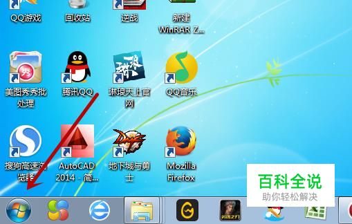 首先我们点击电脑桌面左下角的开始菜单,如图所示。