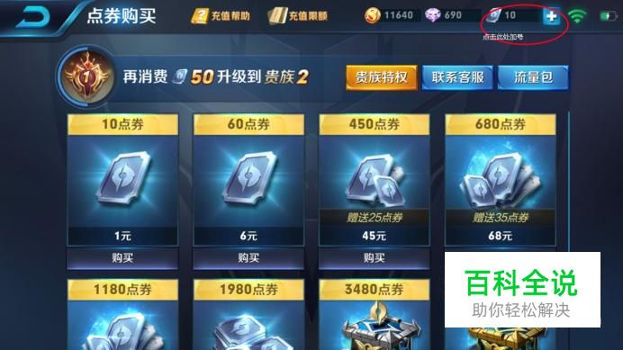 打开王者荣耀后可以点击右上角加号处进入到点券充值界面,如下图所示