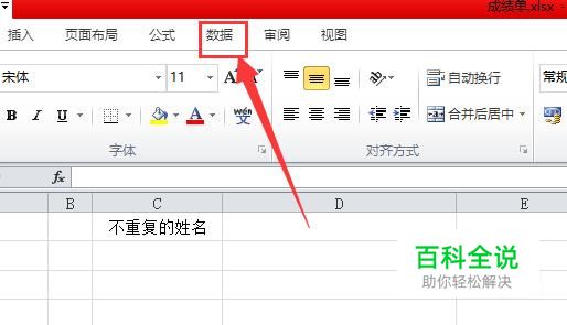 接着,页面会跳转,鼠标左键点击“不重复的姓名”下面的单元格