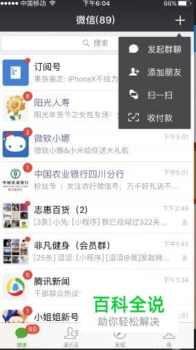 然后我们打开手机的微信 点击右上角的 扫一扫 然后对准红包