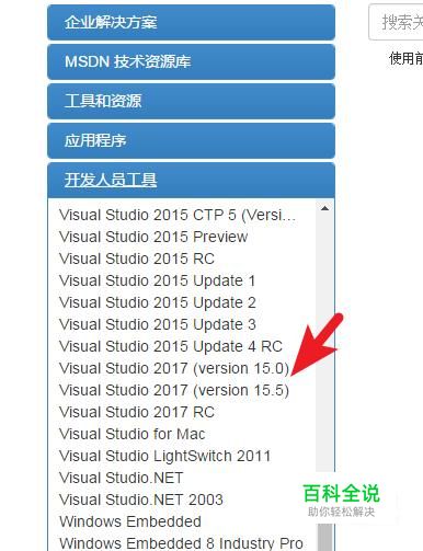 点击左侧开发者工具,选择visual studio 2017
