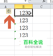如果想取消多个单元格内的绿色小三角,可以把它们一起选中,选中后在选框旁同样会出现方形符号。