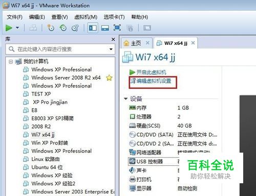 如果没有USB控制器选项,可以通过点击“编辑虚拟机设置”来添加,如下列图示,添加完毕后,重新看步骤1,然后跳过步骤2继续看