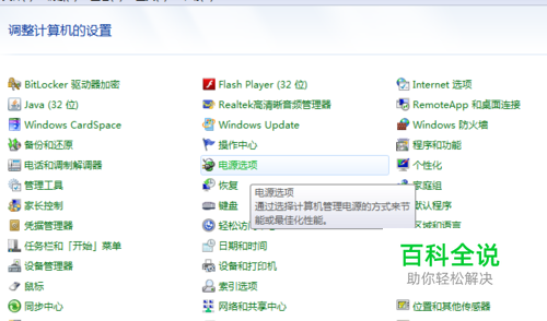 然后选择“电源选项”