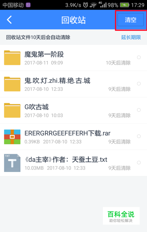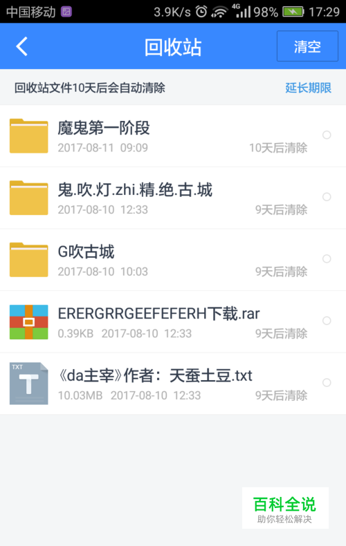 百度网盘回收站的默认存放时间是10天,如果大家想要更久的话,可以点击其中的“延长时限”,不过需要开通会员。