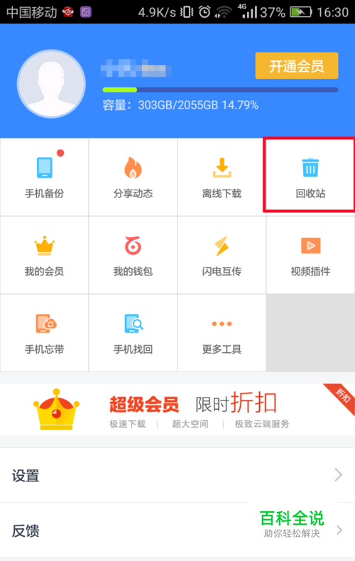 这个页面存放了很多的百度网盘的功能,点击其中的“回收站”。