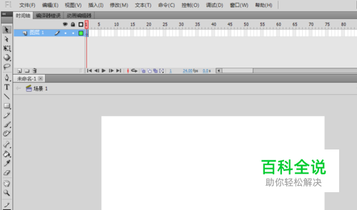 首先,我们新建一个flash文档,打开界面,默认在第一帧。