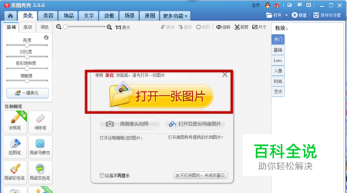 第三步: 点击“打开一张图片“,在电脑中选择待修改的证件照,点击“打开”。 提示:如果您手头没有现成的证件照,完全可以找人帮忙用手机拍一张。