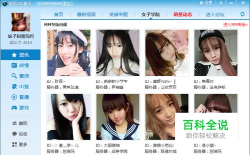 打开女子学院,进入页面我们可以看很妹子发的图,页面包含她们所在的大区和ID,我们可以一直看,就算不加,看球也很好,呵呵
